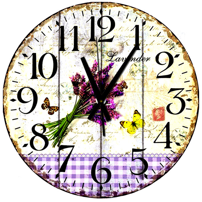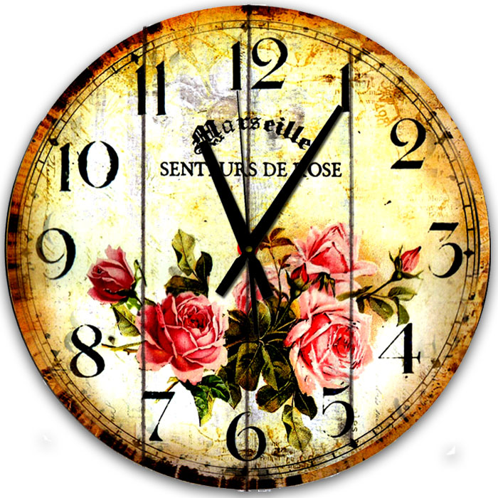 Reloj de pared grande estilo vintage hecho en madera MDF con lámina impresa adherida. Funciona con una pila AA (no incluída)