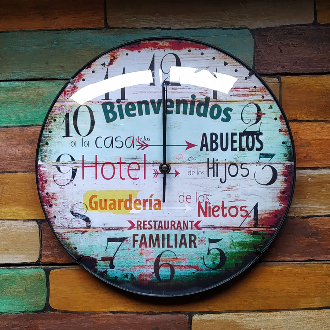 Reloj de Pared Vintage Abuelos – 30 cm, Vidrio Bombé y Base Plástica