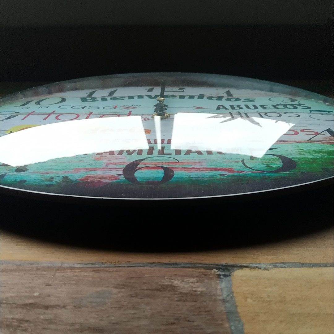 «Elegante reloj de pared de 30 cm con vidrio bombé y diseño vintage con frases y dibujos. Ideal para cualquier ambiente. ¡Sumale estilo a tu hogar!»